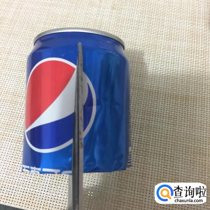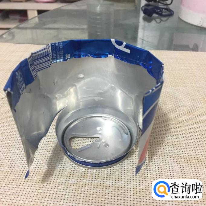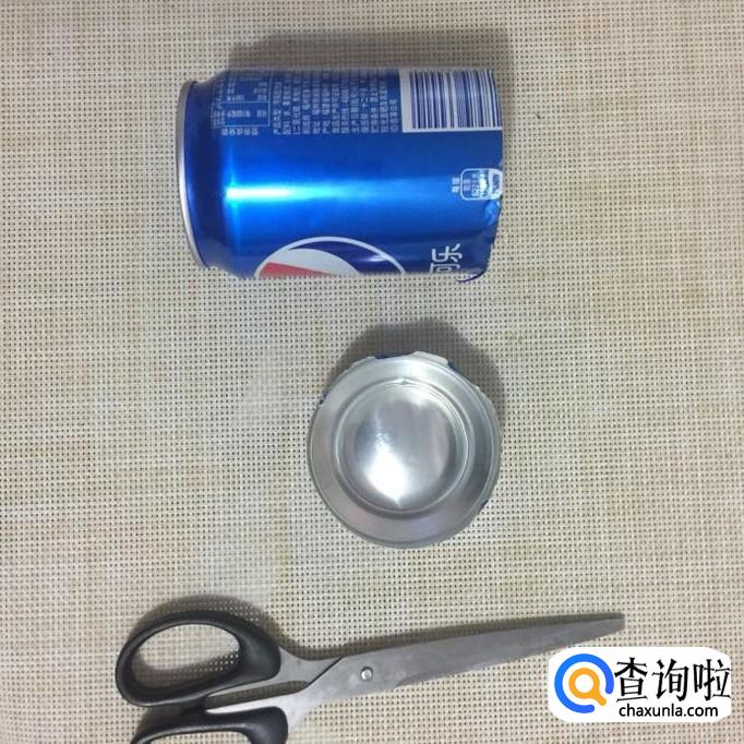 然后用剪刀将易拉罐的底部剪开。注意剪去的部分高度为瓶身整体高度的1/5左右会比较好。