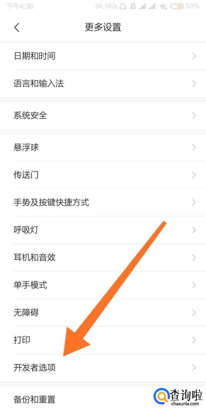 手机进入到开发者模式后,点击进入“更多设置”选项。