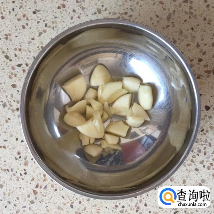取三四个蒜头,将蒜头的外膜去掉,洗净,切碎;