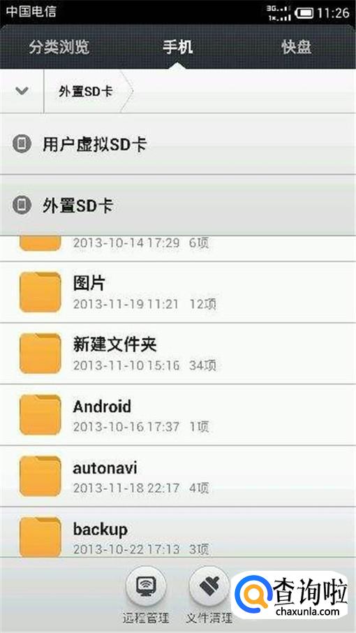 我们打开手机上“文件管理”,然后就可以随意读取U盘中的存储数据了,再拔出手机U盘之前,手机上要弹出USB设备,然后就可以拔下U盘了。