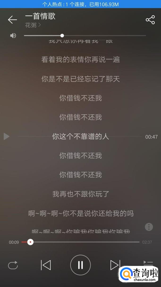 打开网易云,分享一首歌给他,这歌就是花粥的"一首情歌",里面有歌词"你借钱不还我,你这个不靠谱的人"他看到后,自然就明白是什么意思了。