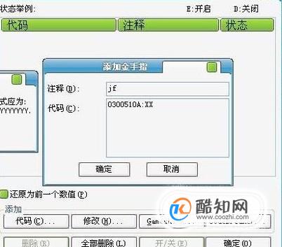 点击“代码”,输入你想使用的金手指代码,保存代码,接下来就可以在游戏中使用了。