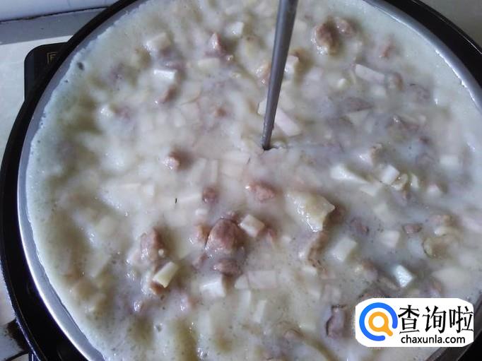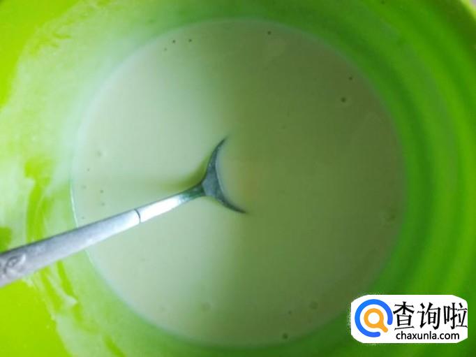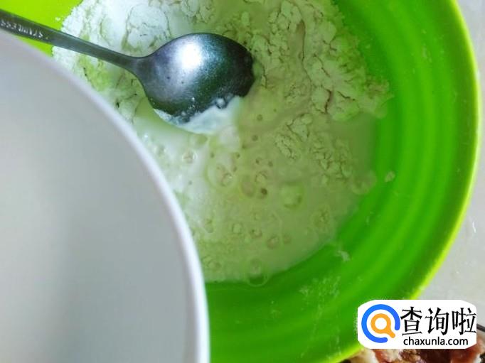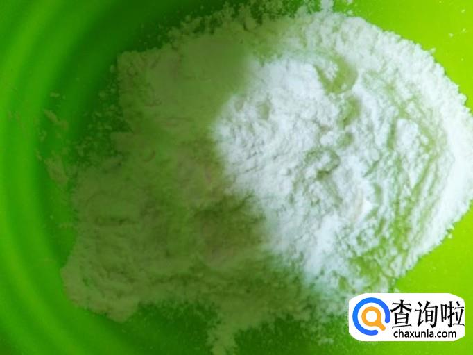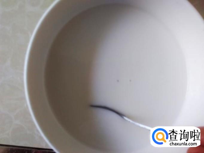 把粘米粉放到盘子,然后加水搅拌均,水和粉的比例是1-1。