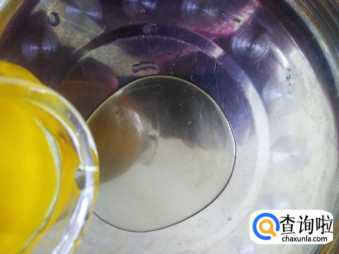 用一个碟子倒点花生油全面刷过,然后倒搅拌好的木薯淀粉进去。