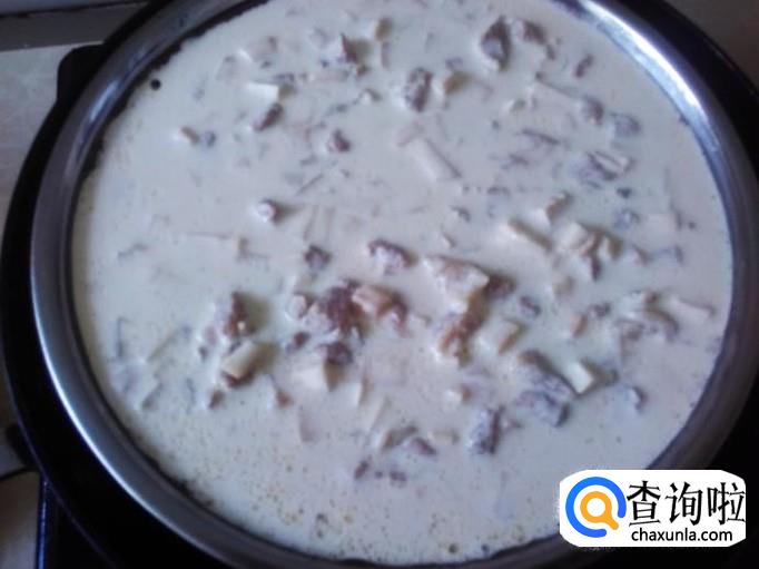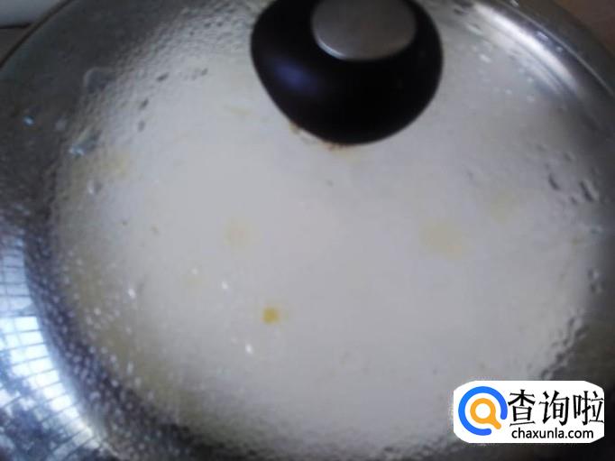 锅里装适量的水煮沸,然后放木薯淀粉进去大火蒸4分钟左右。