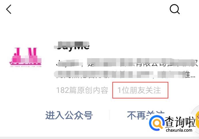 这时候就可以看到有提示多少位朋友关注,代表了你有多少好友和你一样关注了这个公众号。