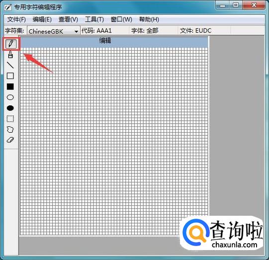 首先我们需要将专用字符编辑程序这款软件打开,在其工具箱内找到画笔工具,如图所示: