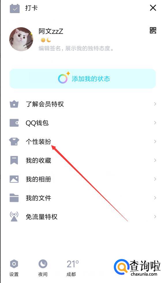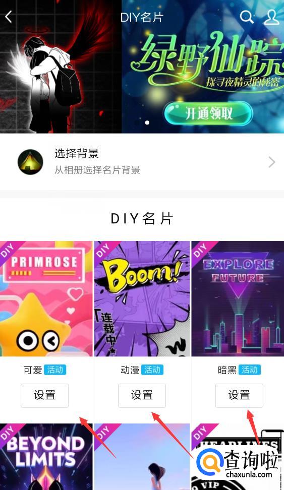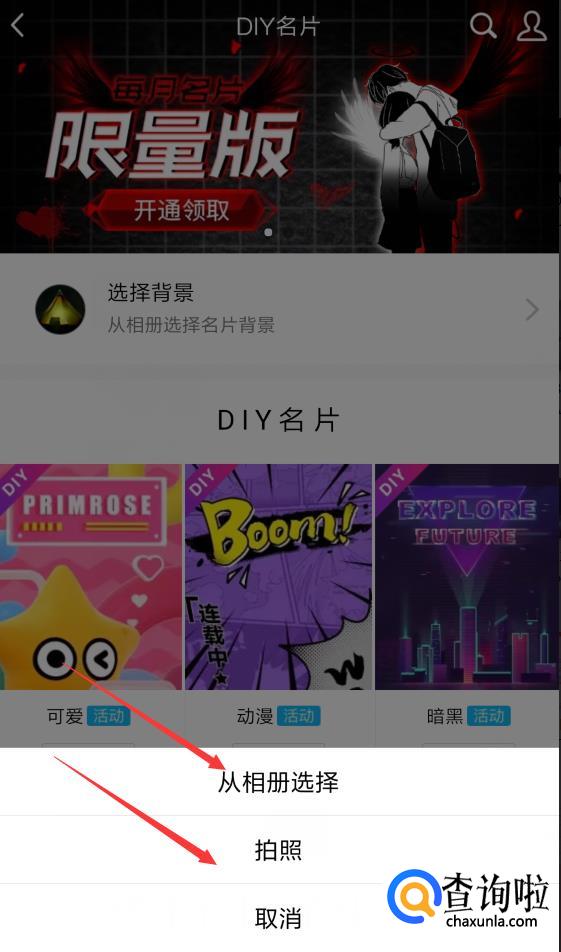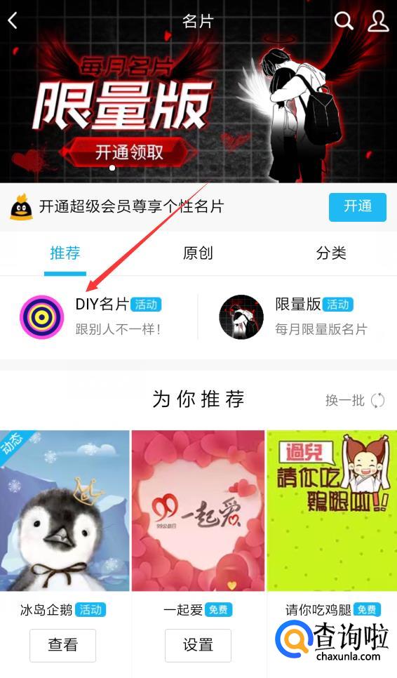 然后在进入自己的编辑资料界面,点开个性名片,然后选择DIY名片。