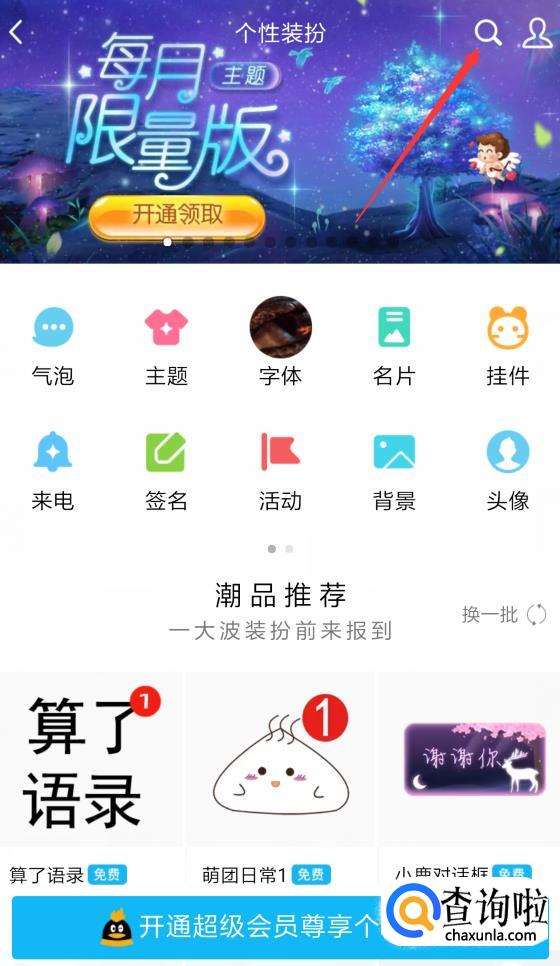 打开个性装扮之后我们找到搜索的标识,点开它。