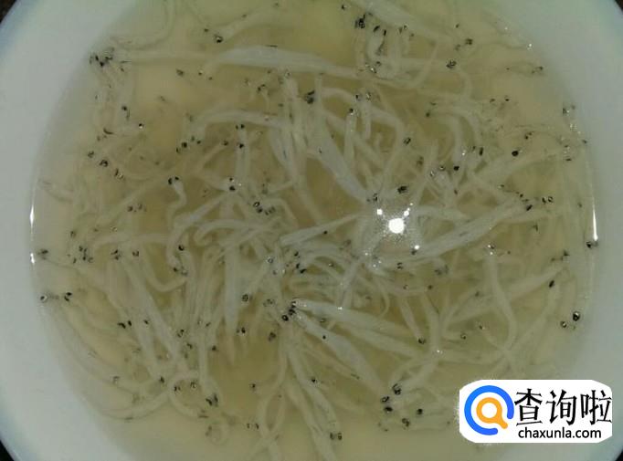 当然,在用温水泡银鱼干的同时,也可以加入加少许食用小苏打。浸泡时间略长,但这样浸泡出来的的银鱼晶莹透明,也不要忘记用凉水清洗。