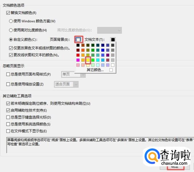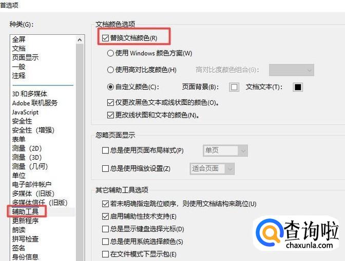 然后我们点击辅助工具,之后勾选上替换文档颜色;