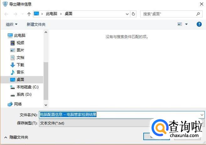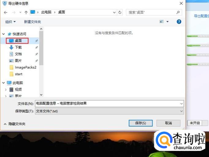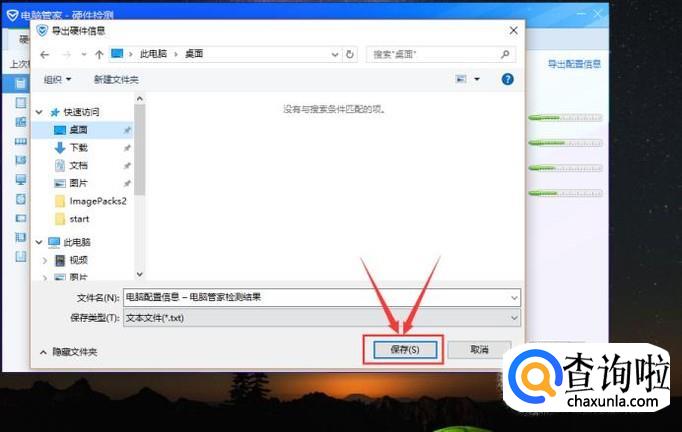 选择桌面后在右下角会看到(保存)的功能点击保存就可以把硬件信息导出在桌面上了,如图所示