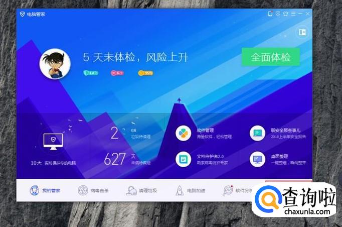 首先打开电脑管家会看到(工具箱)的功能,如图所示