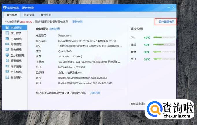 点击下导出配置信息的功能会来到(导出硬件信息)的功能,如图所示