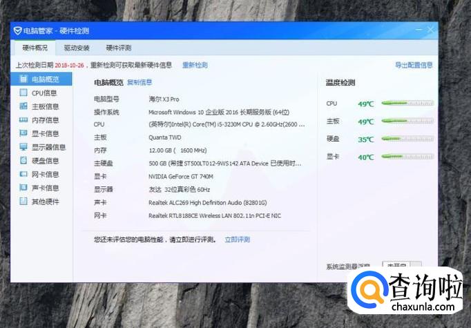 在导出硬件信息界面中往上拉会看到(桌面)的功能,如图所示