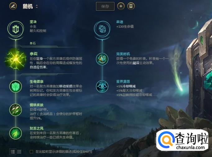 锤石是一个坦克类型的辅助,以帮助队友打控制为主,也就是说自己能够存活的时间越长,那么就能为团队提供更多的控制,作用也就变得越大,所以符文左面建议选择坚决,右面选择启迪,记住点出钢铁皮肤,能够增加5点护甲,前期还是很有用的。