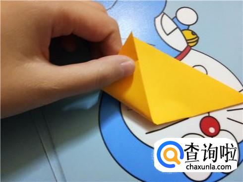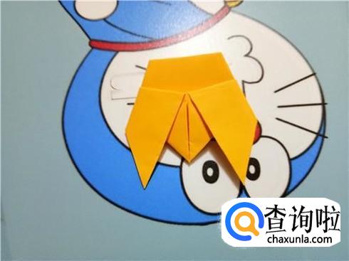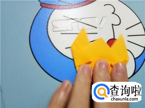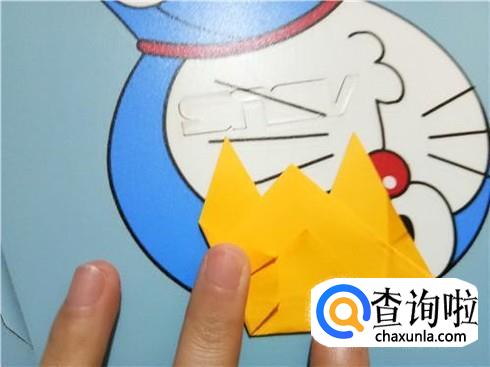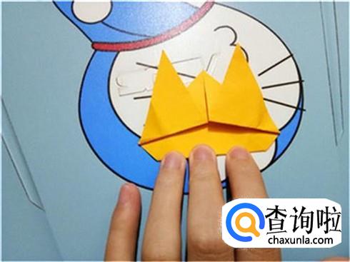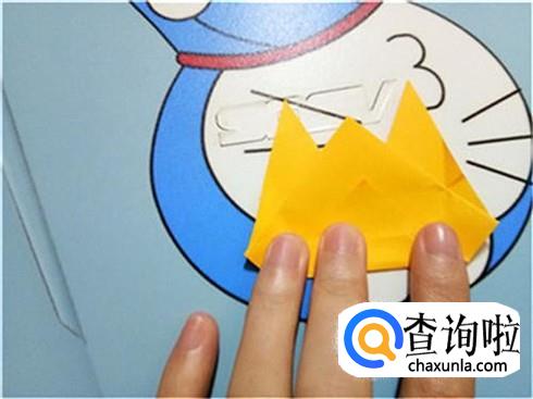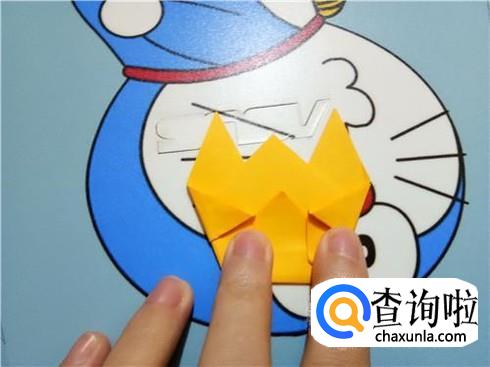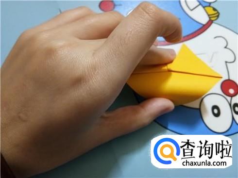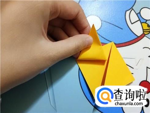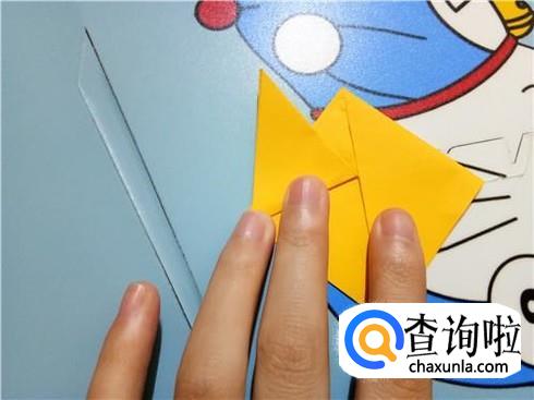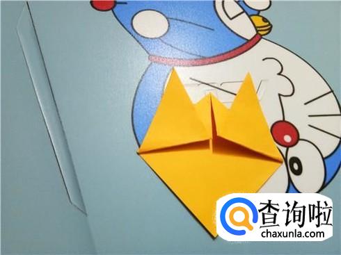 紧接着,我们将下边开口的左右两部分向上对折一部分,将此作为知了的翅膀。
