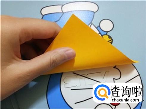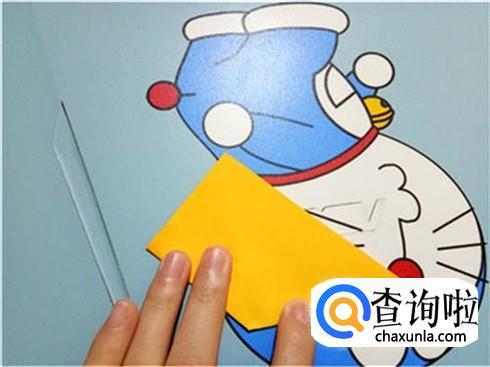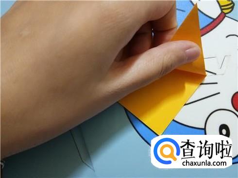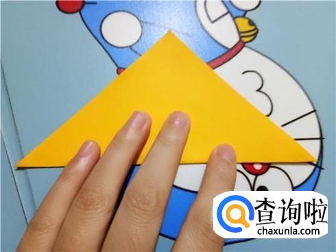 将它最长边的两个角折叠回来与最上边的角重合,并且将它旋转180°。