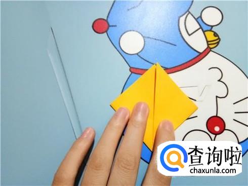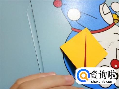 然后,我们找到一张正方形的折纸,并且沿着它的任意一条对角线进行折叠。