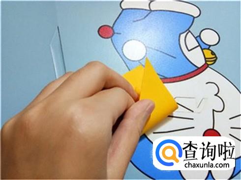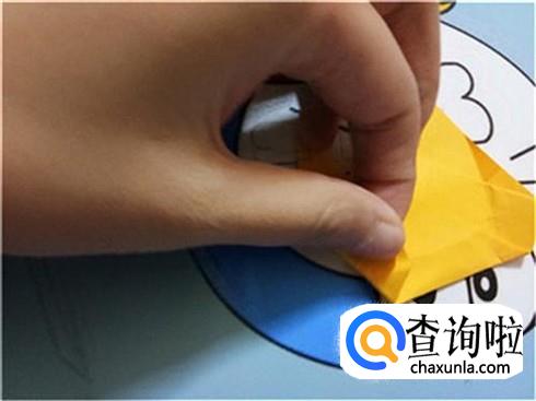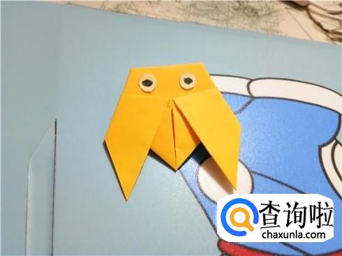 最后,再翻到另一边,并且粘上我们之前画好的眼睛,这样一个可爱的知了就折好了。