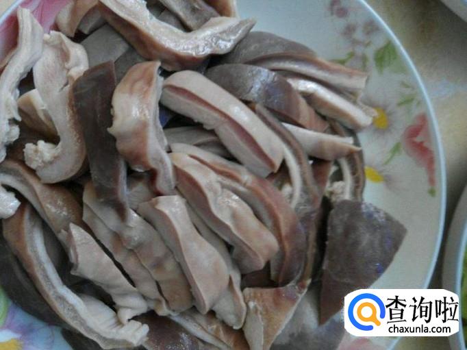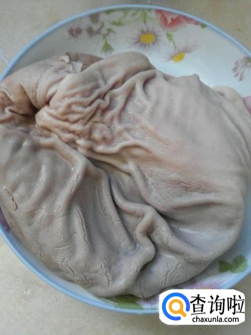 猪肘子把肉去,掉露出骨并且敲破大骨放置备用。猪肚剖开备用。