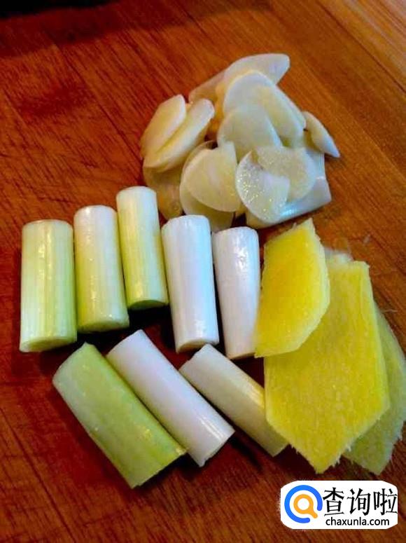切几片姜,葱,蒜切点备用。