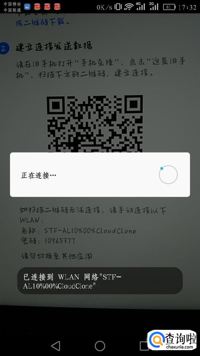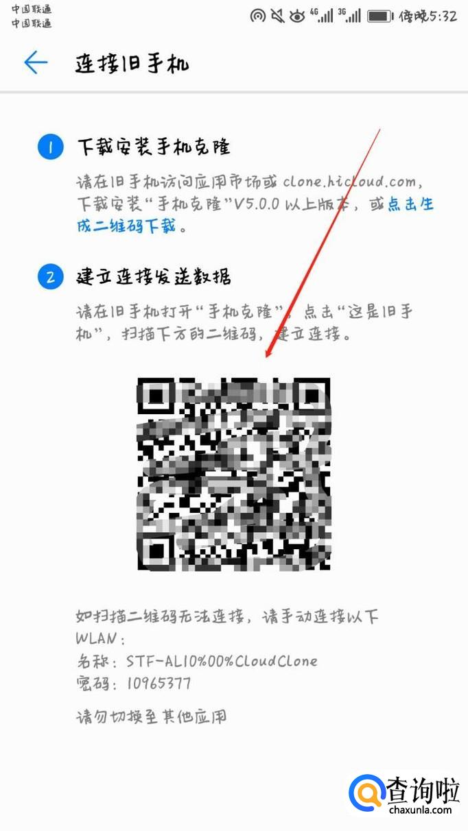 当两部手机都选择好属性之后,新手机会出现下面的图,旧手机会出现扫码的图。用旧手机扫描新手机上的二维码,即可链接。