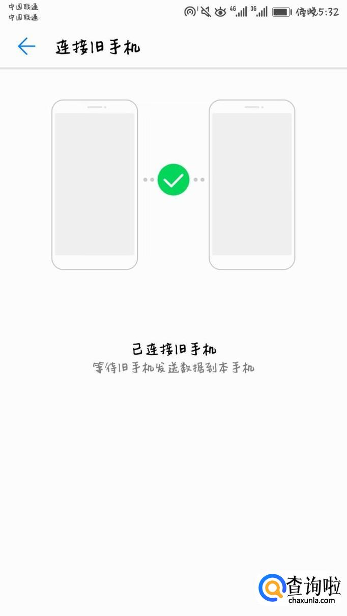 扫描二维码过后旧手机页面如下面第一个图所示,新手机界面如下面第二个图所示(已经连接成功)