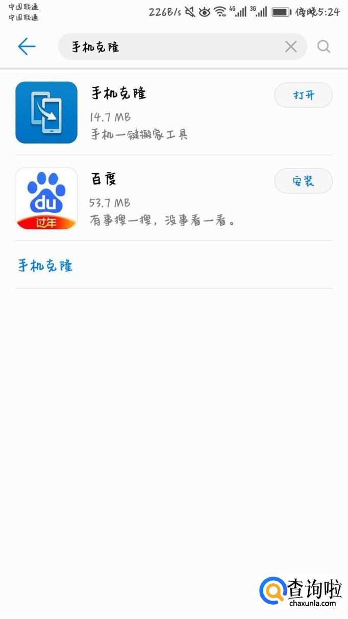 在应用市场里搜索手机克隆,并且安装该应用。注意:两部手机都需要安装这个应用。