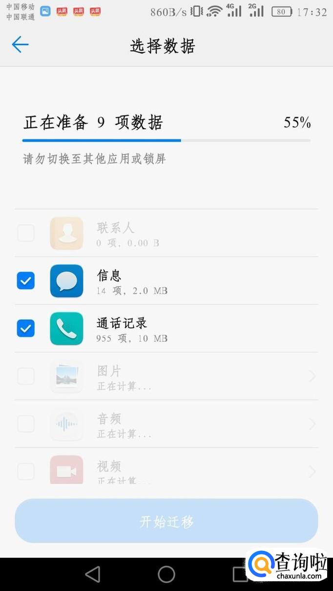 等待几秒,旧手机会让用户选择传输哪些文件,选择好直接选择开始迁移就能够把文件克隆过去了。