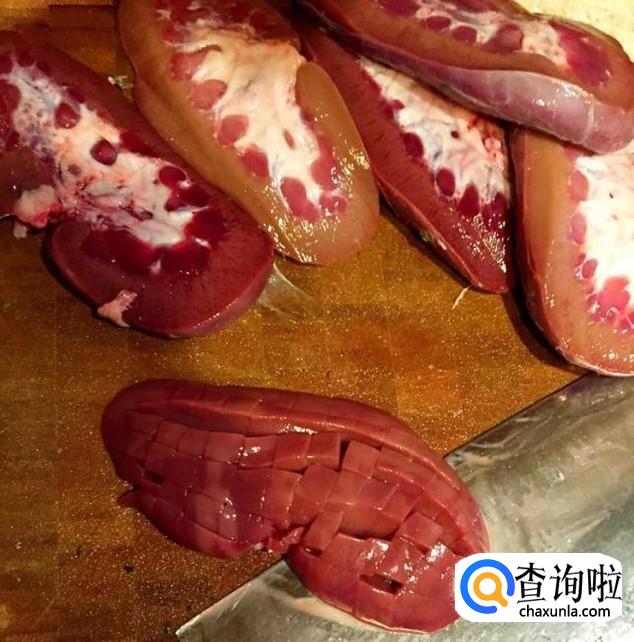 注意:猪腰对半剖开时,中间的白筋和一团团的腰臊是整个猪腰异味最关键的所在,一定要将其彻底去除干净,才能保证口感纯粹,这一步,也是处理猪腰的关键之一。
