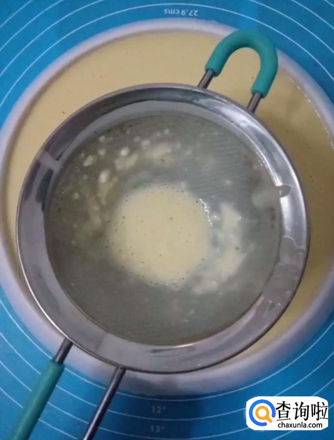 接着我们把搅拌好的面糊过滤一下,把薄饼机预热一下