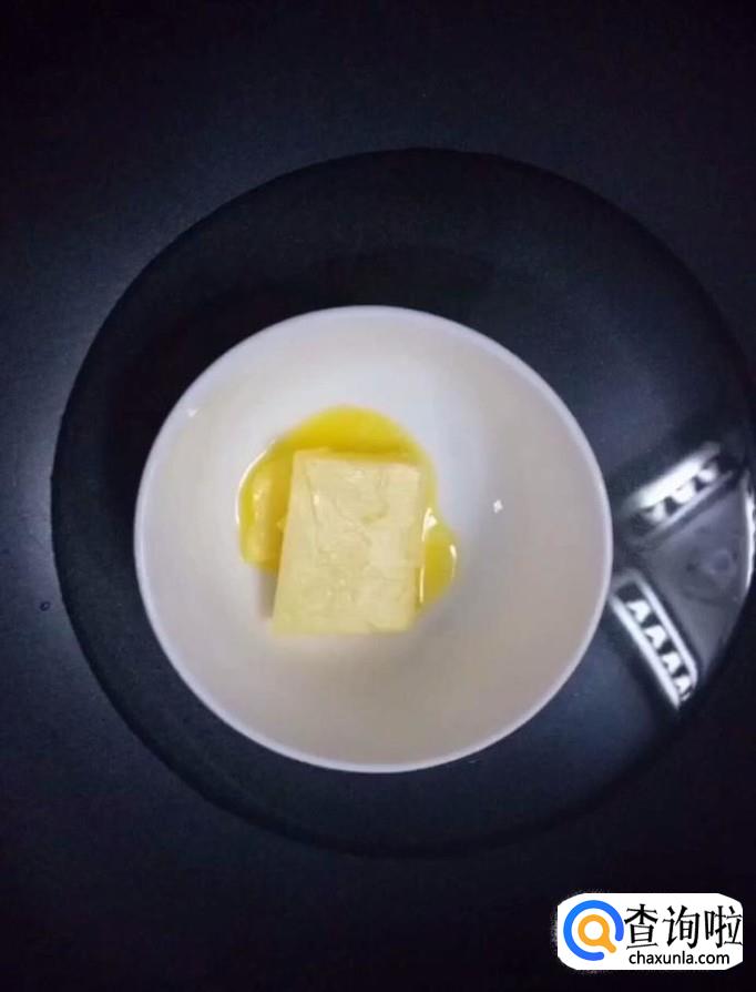 首先我们将30g黄油放入碗中,放入锅中隔水加热至完全融化