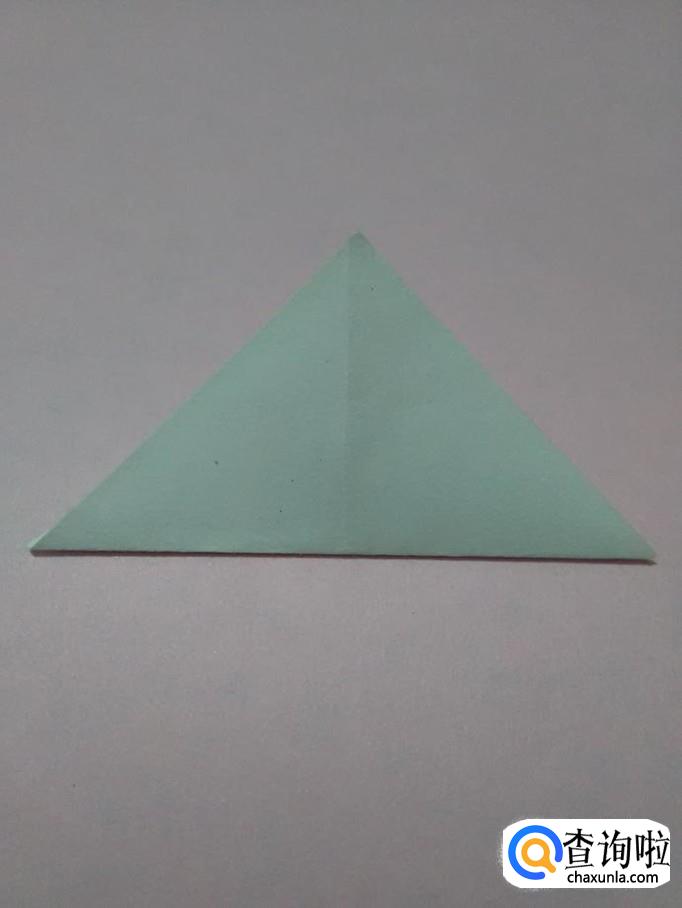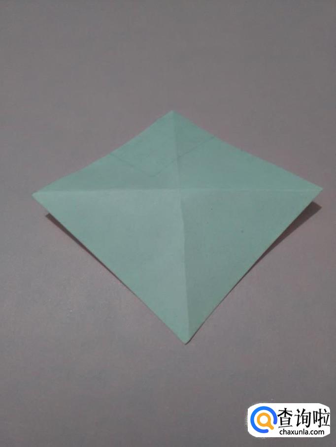 将正方形的纸角与角对折,然后再打开,得到中间的两条线。