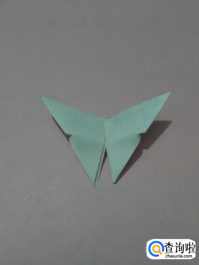 再把纸反过来,把两侧合拢,一只小蝴蝶就折好了。