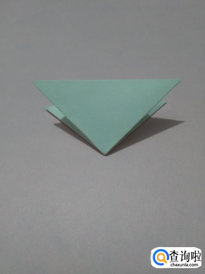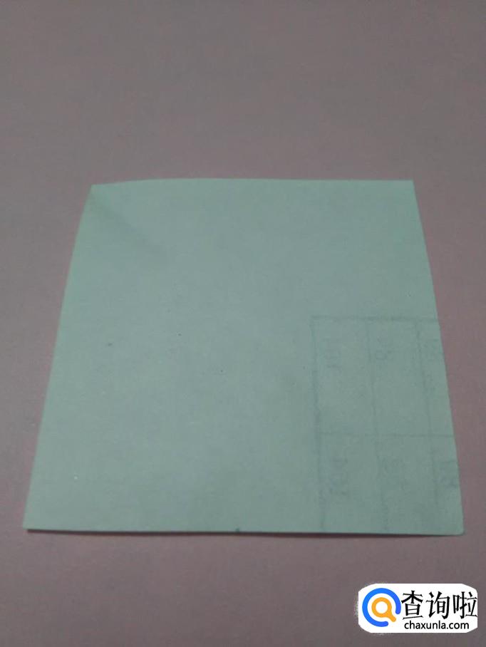 把纸反过来,把下面的角向上折,多出来的尖儿折到纸的后面去。
