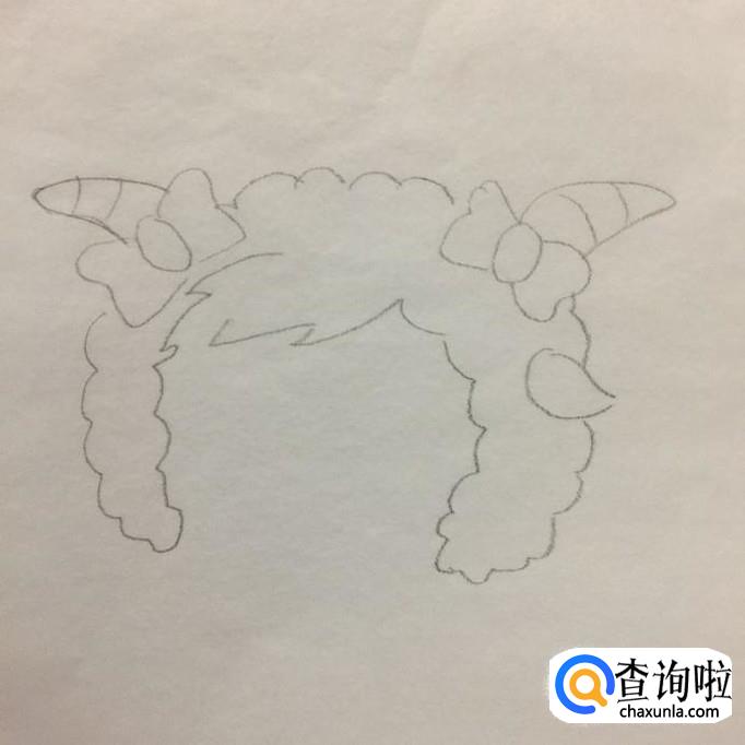 首先画出美羊羊的头发和羊角,如下图所示。注意画这部分的时候不能画太大,因为它的大小直接决定了整只美羊画出来的大小。