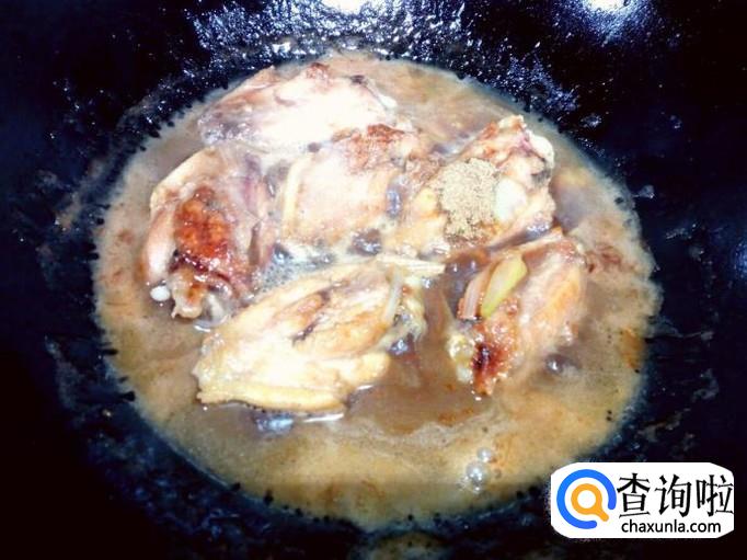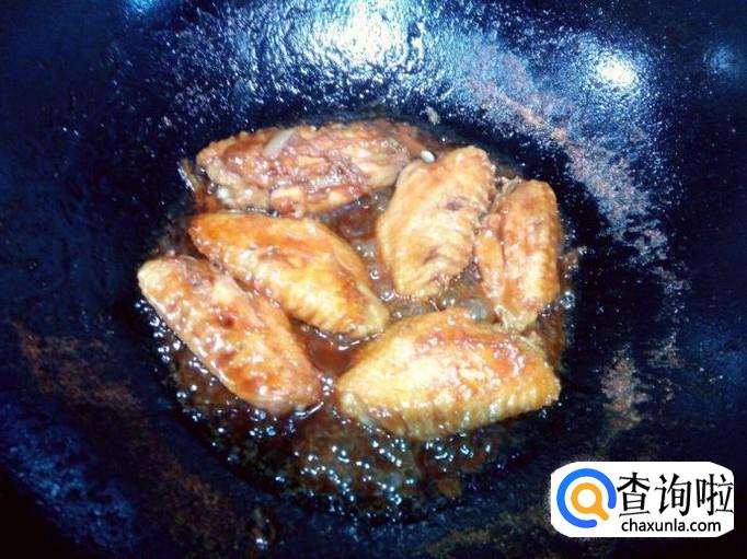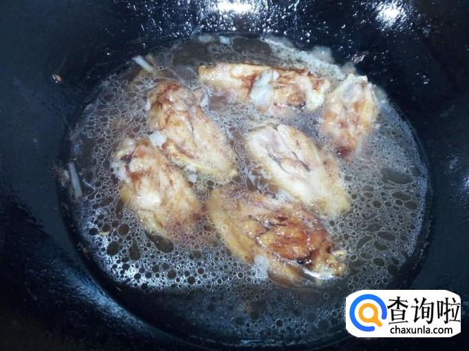 放入煎塌好的鸡翅,稍翻炒一下,然后放入水,水没过鸡翅。大火烧开转小火焖煮。
