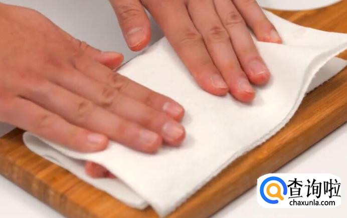 用厨房纸吸除血水。