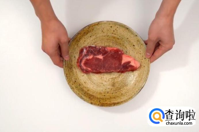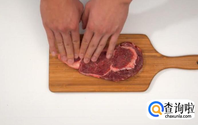 以1.2-1.5厘米厚的牛排为例,煎5分熟。首先,将牛排解冻,先在冰箱冷藏3小时,再室温放置1小时。