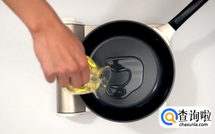 大火热锅,倒入橄榄油。