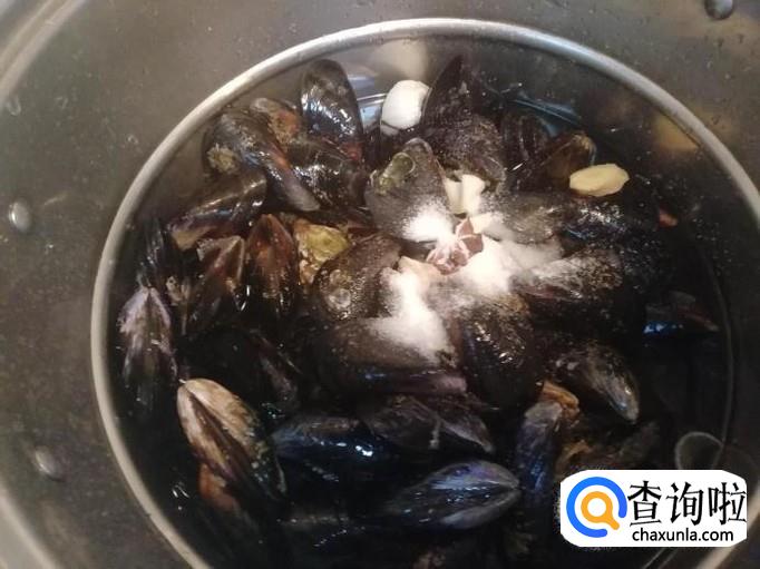 买回来一个海虹,加水放入盘中,再加2到3汤匙盐,量好,不要太多也不要太少。