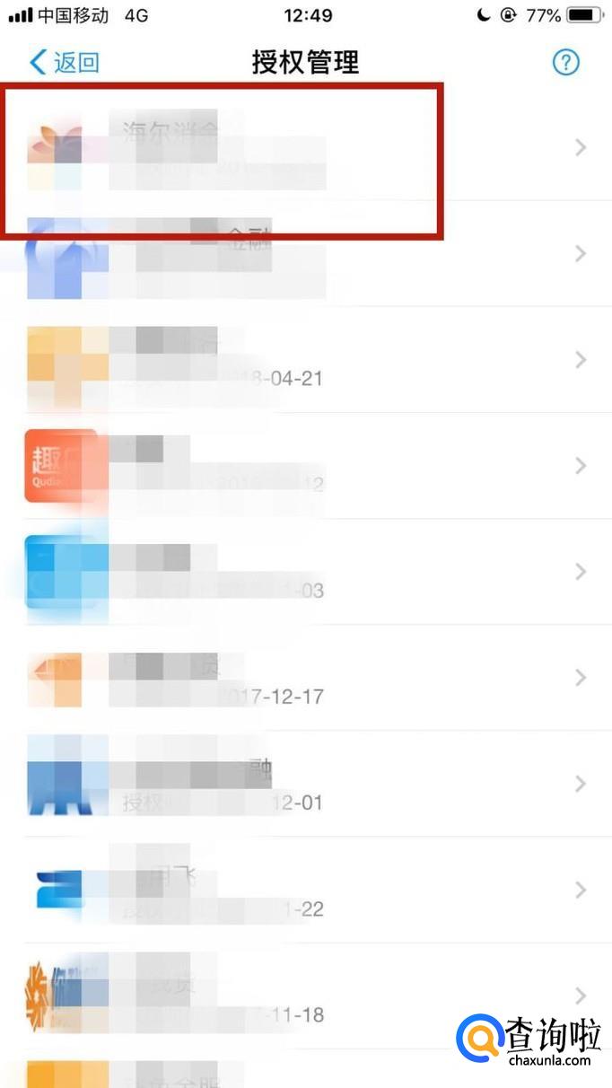 然后点击一个要取消授权的应用,如下图所示。