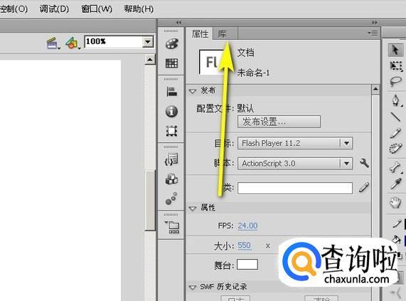 启动FLASH软件,再新建一个文档。进入到软件操作主界面。