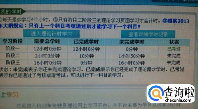 进去以后,点击看视频,不要去做题,只需要看视频来完成学时。每天只能在网上挂四个小时,然后系统会在第二天上传,将科一打完就行或者将三科全部打完也行。打完三科可以领取结业证,以后开出租车需要。