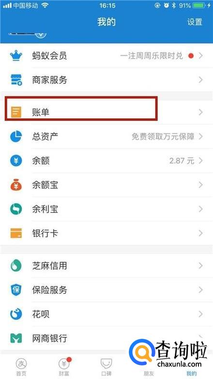 接着点击账单,如下图所示。