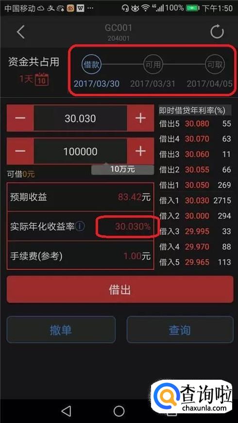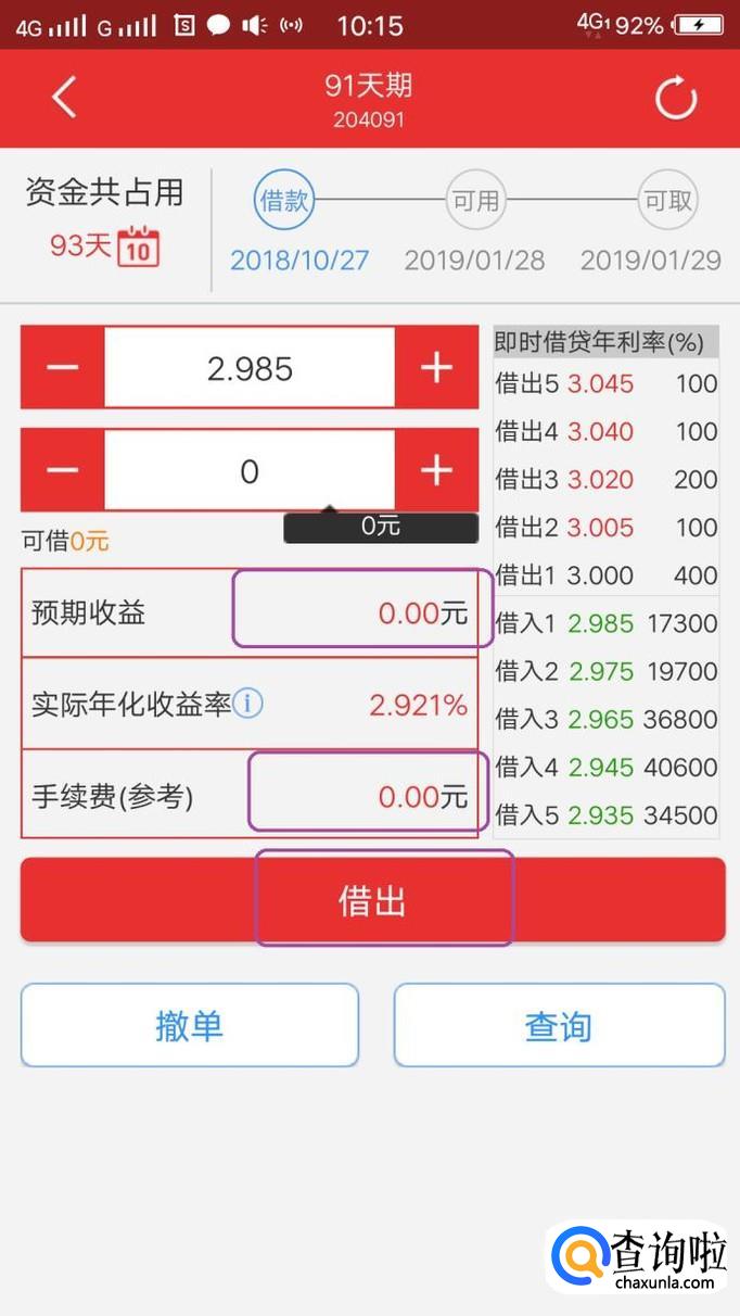 买卖操作和买股票是差不多的,只需输入借出钱的数量,点击借出就可以了,同时在借出页面能看到你的预期收益和手续费情况。