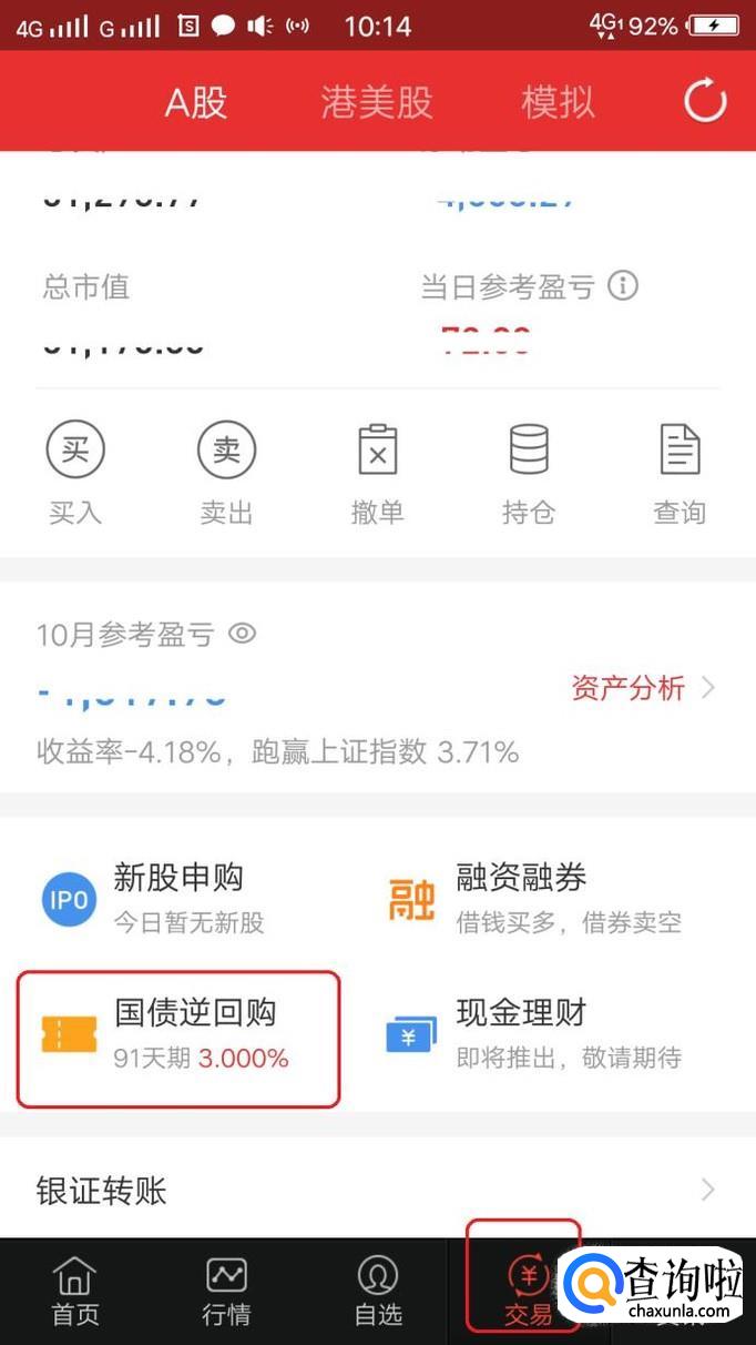在登录后的个人界面就能看到“国债逆回购”入口了,如图所示,我们点击进入。