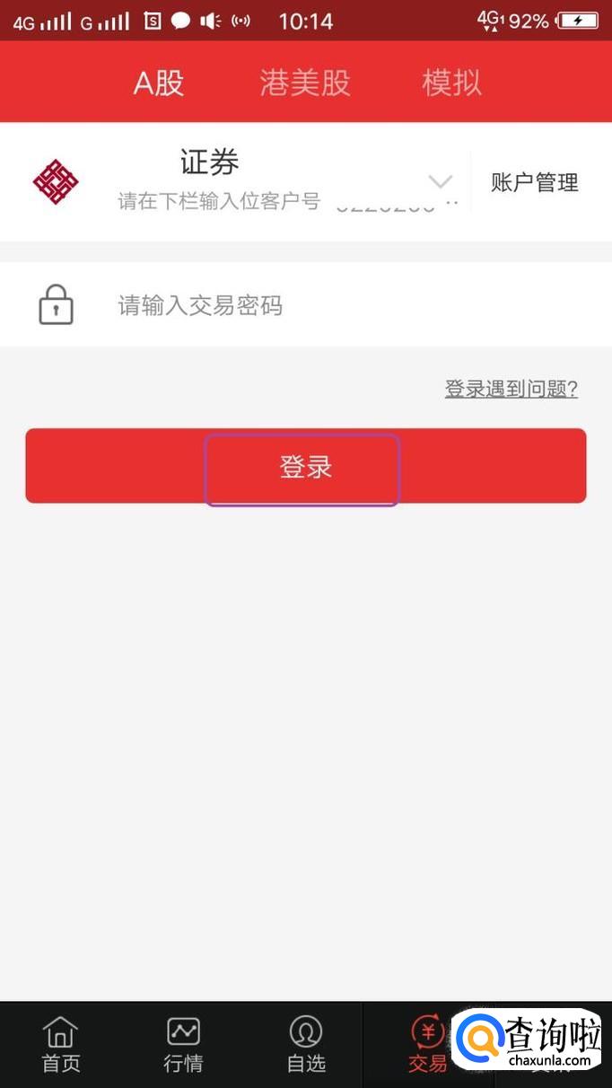 首先,我们打开手机炒股软件,点击下方“交易”,输入账号密码登录。