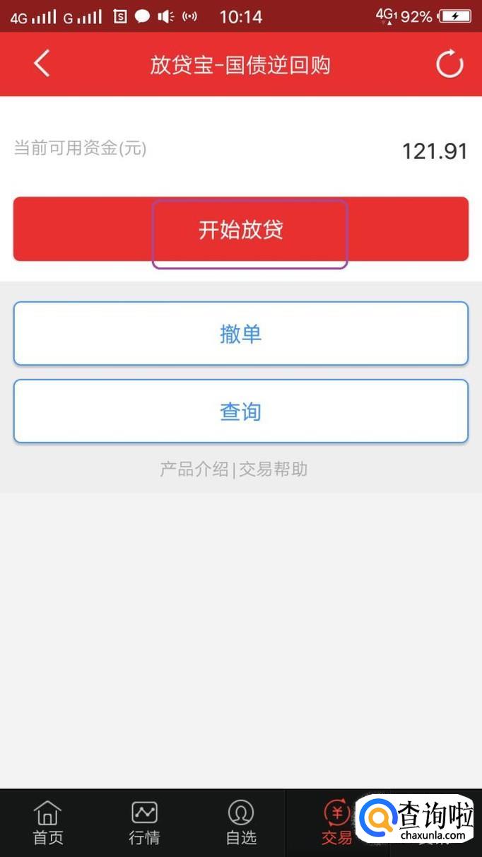 国债逆回购的本质是一种贷款关系,所以,我们点击“开始放贷”。